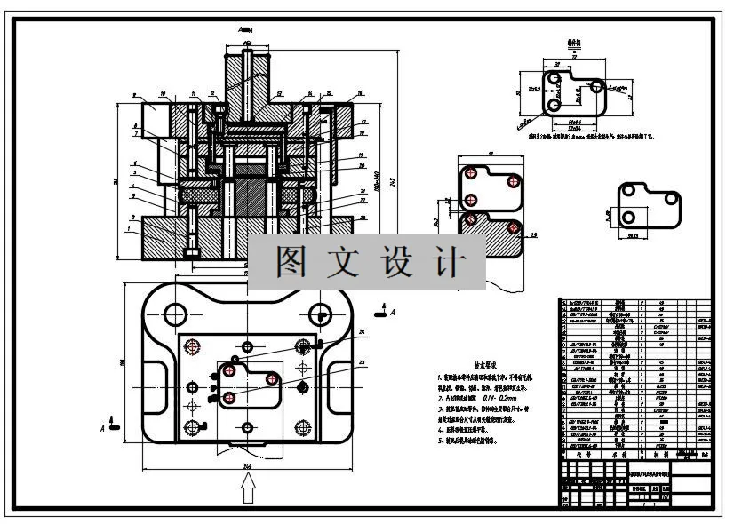 (1)结合工件的外形轮廓可知,工件外形属于圆形,内孔为圆形,材料厚度为2.0mm,工件形状属于不对称产品,根据生产批量,考虑模具的生产寿命,选取相应的模具制造材料。 (2)工件上的最小孔直径为12mm,孔边距为3mm,这些数值均大于材料厚度的1.5倍,所以该零件的结构满足冲裁要求。1461411