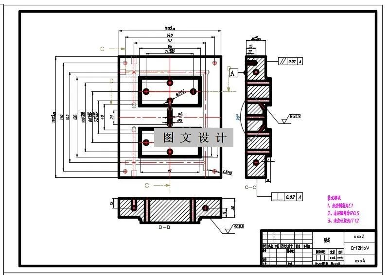 本模具设计最关键的一点就是设计已达到实际生产的要求在设计过程中,为了更清楚的表达模具的内部结构,因此附有大量的模具结构图和模具局部图,并通过通过cad软件画出它的二维图和零件图。 1460944