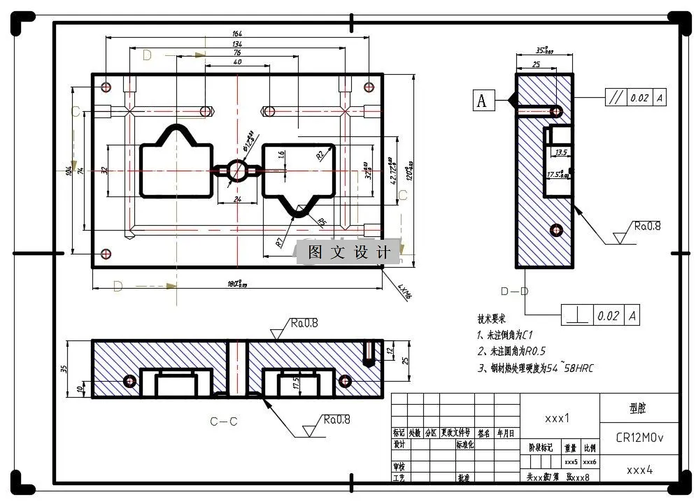 单耳端盖C注塑模设计采用的是一模2腔,侧浇口的 设计方案,图纸有cad装配图,全套的非标零件图,分型面采用的塑件最大外形底面分型面,设计说明书内容详细 1460162