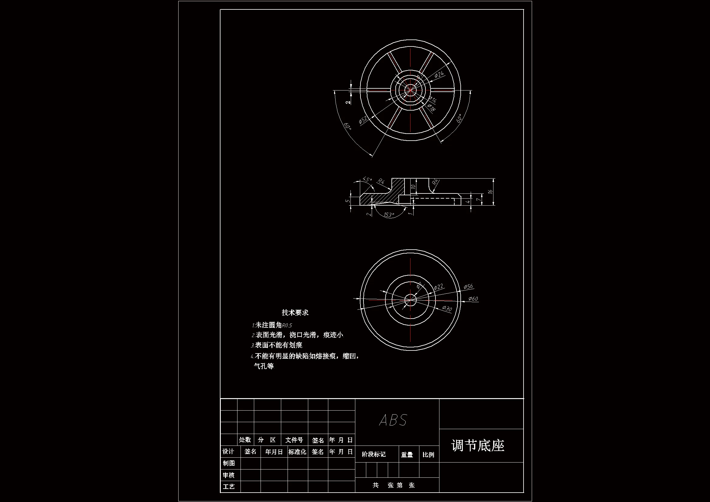 本设计采用CAD、UG软件,进行了塑料模具设计,根据注射模设计,分型面选择在大断面处,进行了浇注系统设计,成型后,塑件成型的产品放在注塑机上。设计需要计算塑件的尺寸,确定尺寸精度,然后注射机的选择。检查注塑机参数包括厚度,模具安装尺寸,模具闭模行程,注塑机锁模力等参数,所有符合要求在确定注射机的类型。在设计过程中,为了更清晰地表达模具的内部结构,所以有很多的模具结构和模具的局部图,并绘制二维图。