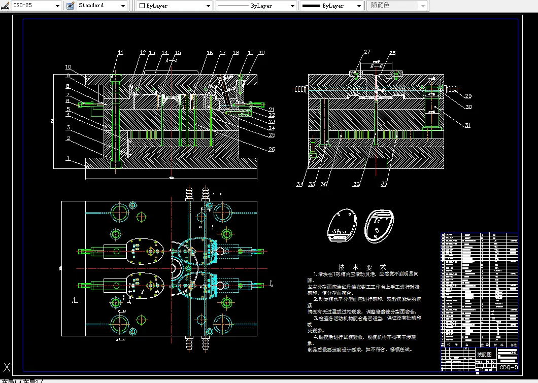 本文研究的是盒盖子的注塑成型。首先分析产品的成型工艺,然后根据产品结构,设计如何分型,及型腔数目,进胶方式。过程中要充分考虑到零件的加工方法,尽量简便精准,并进行相关尺寸的计算和校核,再设计浇注系统,冷却系统,排气系统,脱模机构,导向机构,以及模架的选择。通过CAD,UG ,等软件辅助分析设计是否合理,选择合理的工艺参数和设计方案。