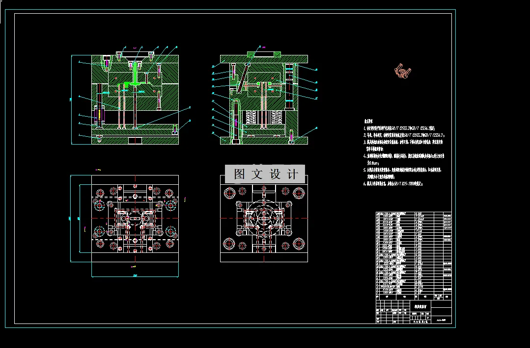 本参考资料手机支架注塑模具设计主题。模具型腔数目为一模两腔,浇注系统侧浇口,塑件上对称侧孔结构采用斜导柱抽芯机构成型,脱模机构采用推杆推出,本资料含有模具装配图、模具三维、多张模具零件图