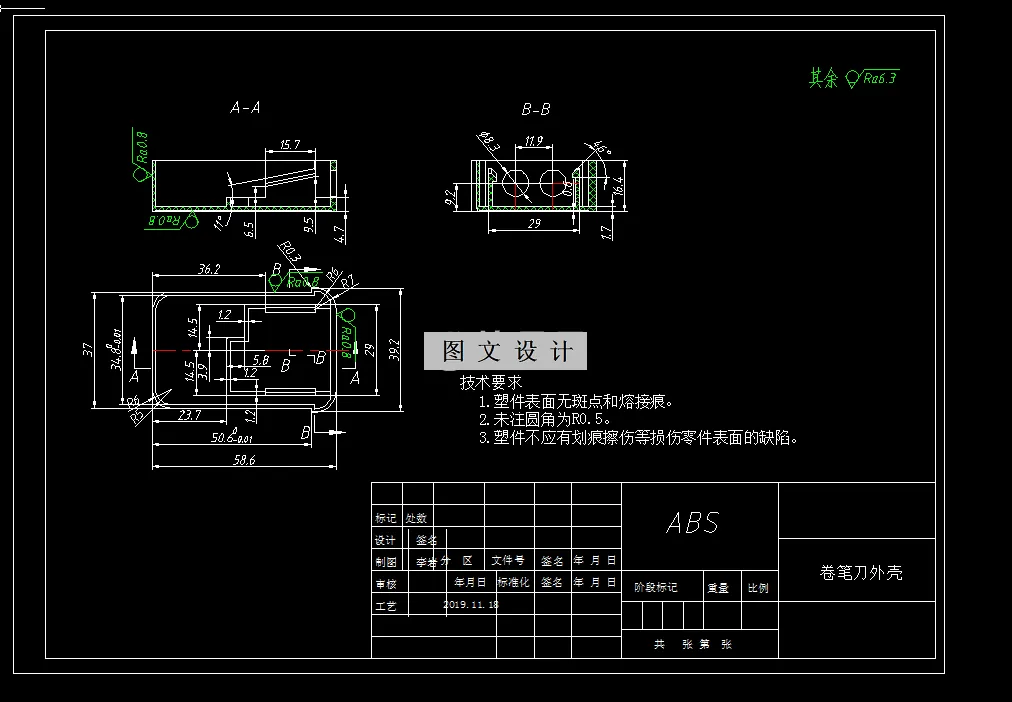 本次设计主要是通过对塑件的形状、尺寸及其精度要求进行注射成型工艺的工艺分析、侧向分型与抽芯机构设计,重点在侧抽芯机构的设计。在这过程中分析了模具受力,推出脱模机构的设计,合模导向机构的设计,冷却系统的设计以及排气系统等,并绘制完整的模具装配总图和主要的模具零件图。设计中力求模具结构设计简单、合理、实用,使得模具结构紧凑、工作可靠,可实现全自动操作。模具一模两腔结构,点浇口点在产品顶部处,塑件上侧凹结构采用斜导柱抽芯机构成型,推杆推出,本资料含有模具装配图、模具三维、多张模具零件图