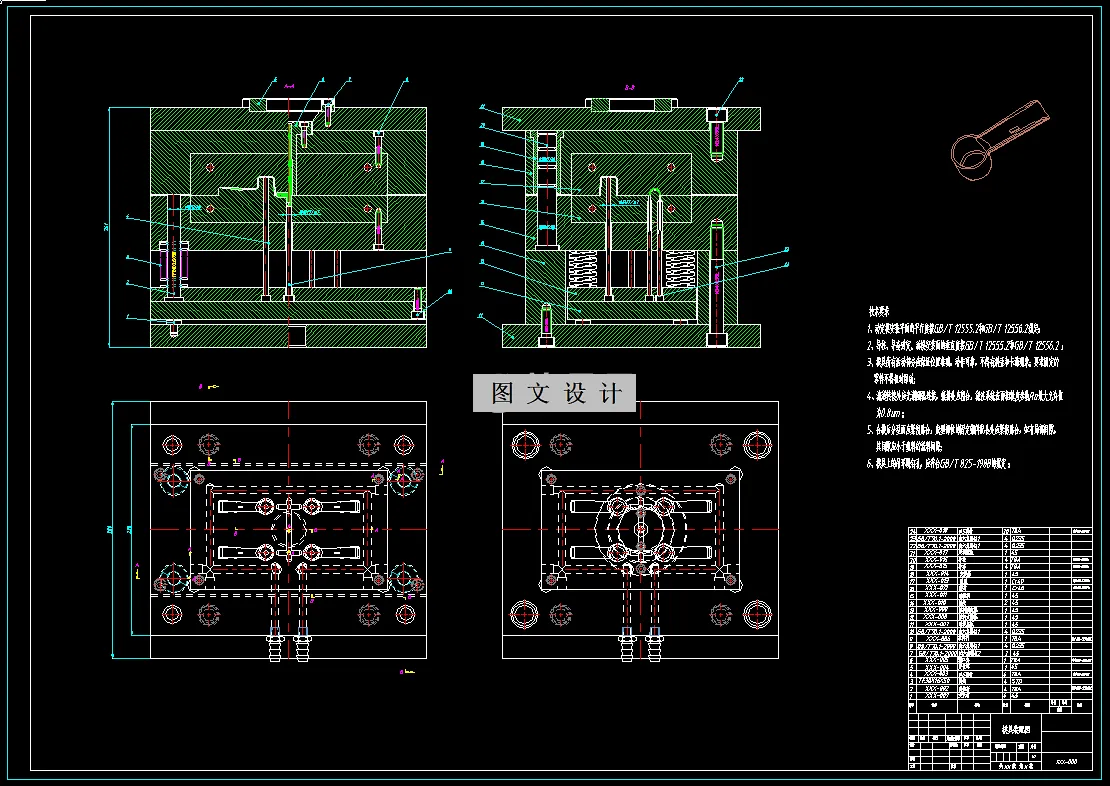参考资料电动牙刷保护壳注塑模具设计主题。模具为一模四腔,侧浇口,推杆推出,本资料含有模具装配图、模具三维、多张模具零件图等等