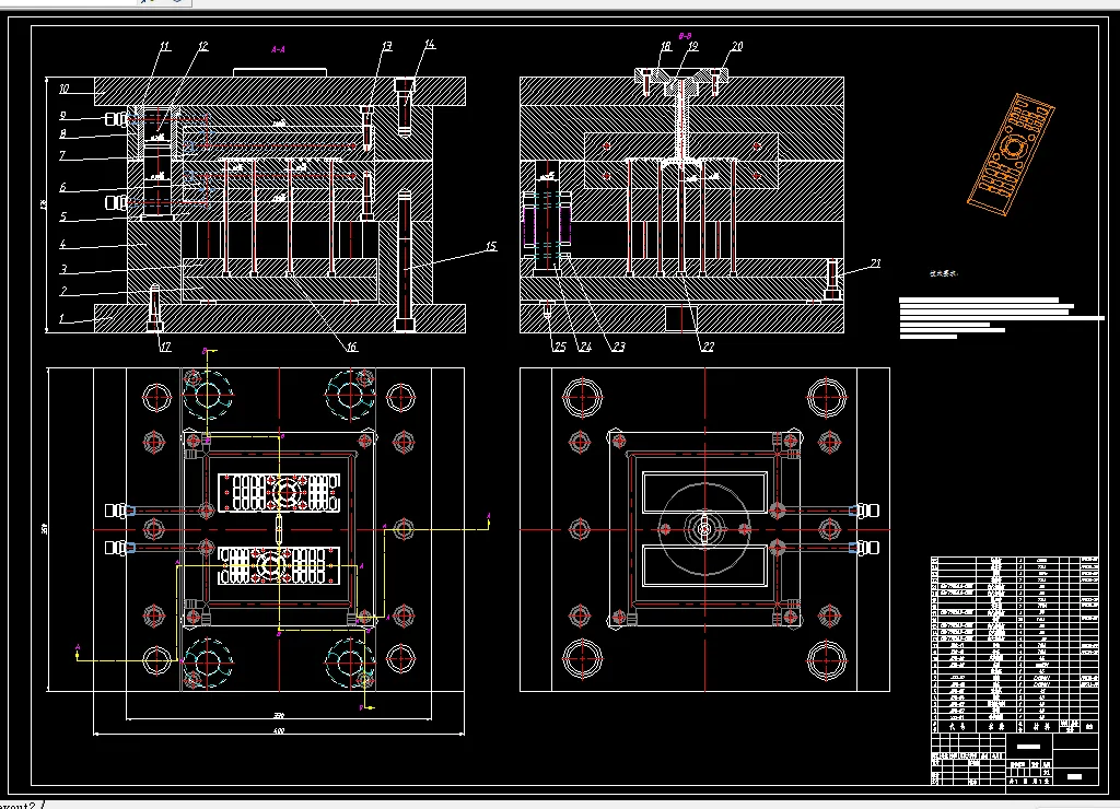 本次毕业设计是为生产遥控器上盖设计一副模具,从多个方面进行了研究,其中重点对塑件的工艺和结构这些方面进行了大量的分析,首先分析了产品的工艺性,之后开始着手设计模具的浇注系统、成型的部分和顶出、冷却等方面的设计。在设计完成后结果显示设计可以满足塑件的加工工艺。在设计过程中,我分别采用了UG和CAD两种软件,其中,前者主要是对遥控器上盖进行造型同时帮助我设计得出了塑件的体积和重量,并对结构型式以及浇注系统、推出机构、型芯型腔的结构设计有很大设计帮助。经过一系列的设计,绘制出了模具的三维,最后导出了工程装配图。