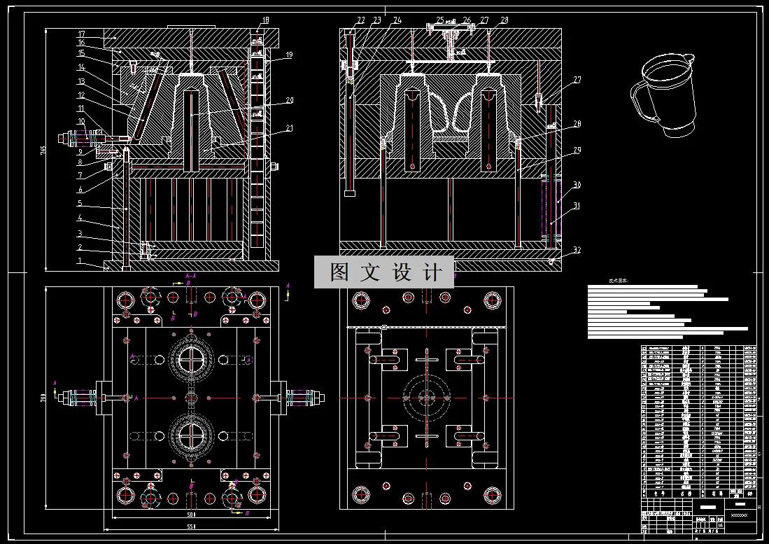 本设计是注塑模具设计为主题。其设计思路由参考多个生产事例而得出,设计内容是从零件的工艺分析开始的,根据工艺要求来确定设计的大体思路。在设计当中,很多东西都是自己原来所没有接触过的,尤其是前段时间所学的理论课知识与现在的自己动手操作设计,设计顺序开始是从零件的材料选择,接下是成型参数、密度、收缩率的确定,模具种类与模具设计的关系、塑件的尺寸精度与结构、注射机的选择、模具设计有关尺寸的计算(包括模具型腔型芯的计算及其公差的确定)、注塑机参数的校核、模具结构设计、模具冷却、加热系统计算、注射模标准件的选用及总装技术要求等内容。 其次是模具的结构,在模具结构的设计当中,首先设计的是模具的型腔结构,接下来是型芯结构、斜导柱、滑块、导向机构、复位杆、拉料杆、推件杆和推出机构,这样做的目的是为了规范化,更重要的是为了以后与制造人员的配合。既让自己有了良好的设计习惯,又能锻炼自己的配合意识。为以后工作做一次演练,这样更能体现理论与实践相结合的目的