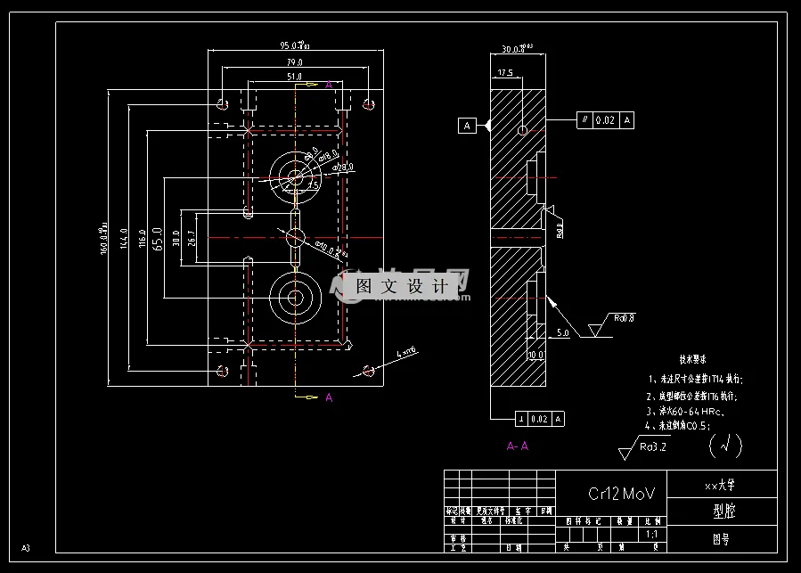 本文研究的主要内容是包括塑件的工艺分析、选择注射成型设备、设计成型方案、模具成型零件与推出机构的设计等。具体包括分析主要结构特点、计算塑件体积、注射量和凹凸模的尺寸;设计主流道、分流道、浇口、冷却系统;选择合适的脱模机构、确定合理的型腔数目和排列方式。