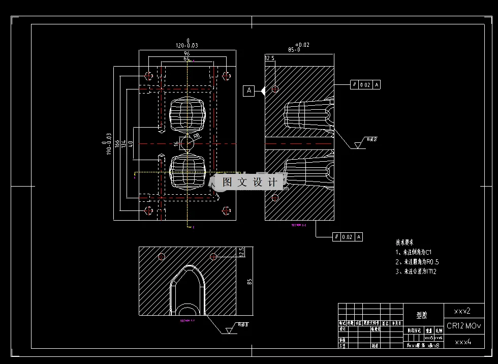 基于对塑件特征、成型工艺等多方面的考虑,决定采用一模2腔,侧浇口。单分型面的注塑模具,然后根据单次注射量和计算出来的型腔压力等参数选择注塑机,并对注塑机的各个参数进行校核。进而确定了模具的整体结构,并对模具的浇注系统、成型零件、侧向抽芯机构、推出和复位机构等作了设计