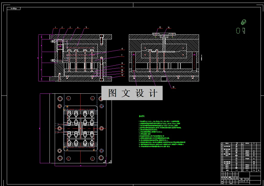 通过对盖子产品的结构特点分析,确定了分型面最佳位置以及型腔数目及型腔排布,然后就可以展开模具具体结构设计,包括浇注系统,冷却系统,脱模机构,导向机构,侧向分型抽芯机构等机构设计,在这个设计过程中为本次注塑模具成型选择了注塑机,并对所选注塑机型号的重要参数进行校核。绘制模具装配图,模具零件图以及模具三维