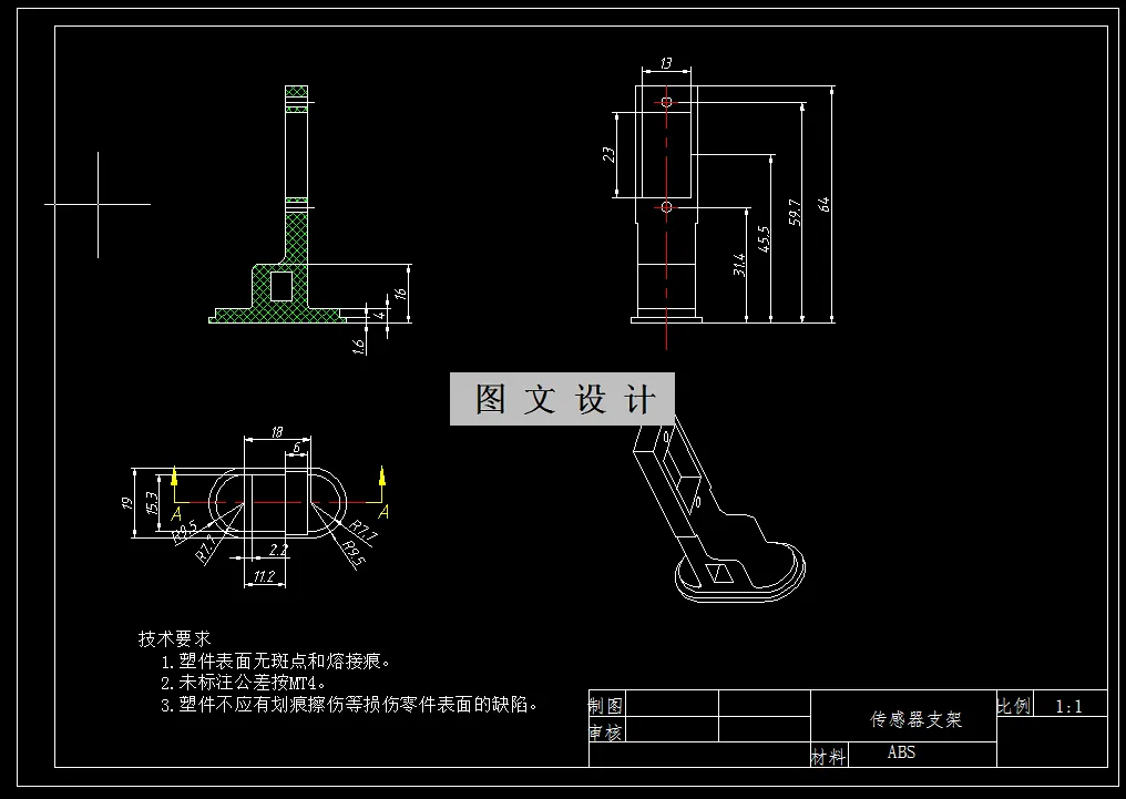 塑料模具工业在中国的制造业市场发展越来越迅速,模具设计和制作市场也随之变得越来越大,也因此塑料制品在我们生活的方方面面扮演者不可或缺的角色,本课题设计的目的是要为魔方机械手传感器支架来设计一整套注塑模具,通过分析外部结构和尺寸,对分型面位置和模具的型腔排列进行了比较详细合理设计,模具决定采用一模四腔H形排列方式,分型面设计选在产品中间位置处,浇口采用侧浇口方式。再由塑件成型所需注射量的大小对注塑机进行了选定XS-ZY-125型号注塑机,最后还对注塑机相关重要参数做了校核。最后为生产魔方机械手传感器支架的塑料模具设计一套冷却系统和排气系统。