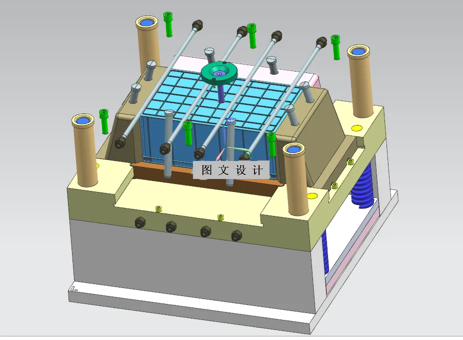 方形塑料周转箱注塑模具设计:一模一腔确保制品精度,直浇口实现高效注塑;四面斜导柱滑块抽芯应对复杂结构,推杆顶出便于脱模。整体设计注重稳定性与耐用性,满足周转箱高强度、高承载要求,为物流仓储行业提供高效、可靠的注塑模具解决方案。