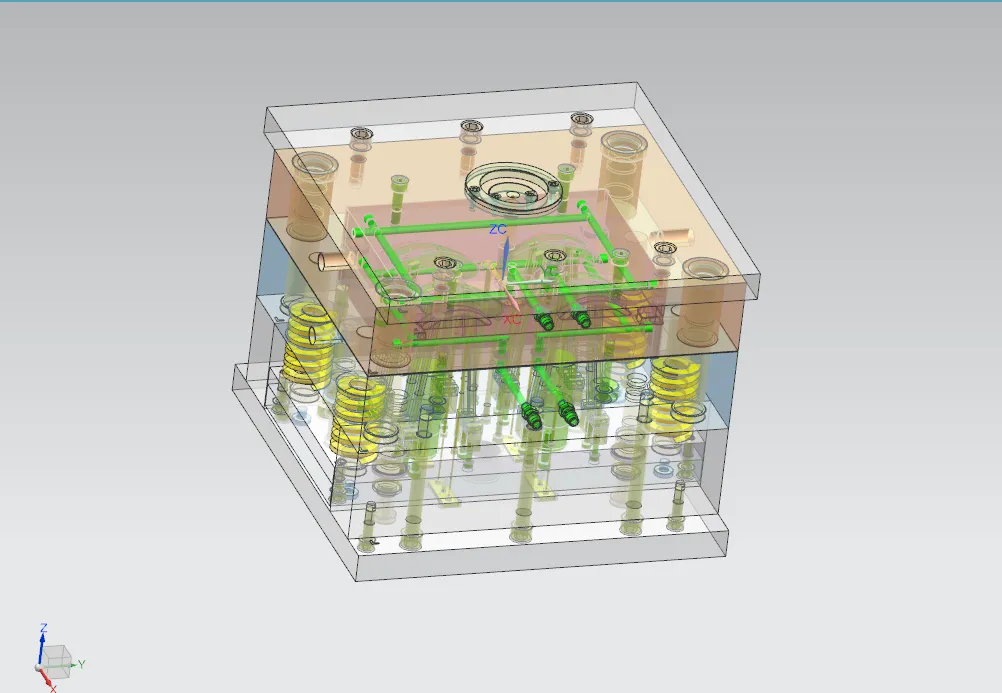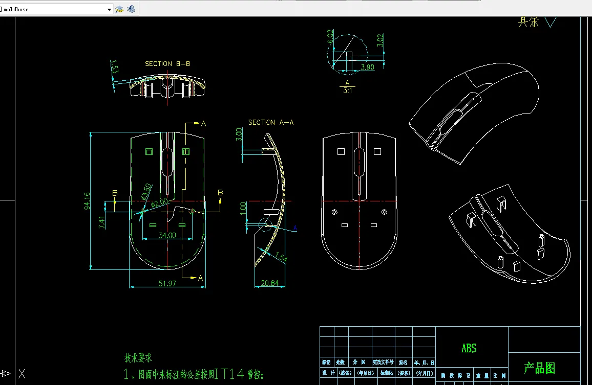 本次设计中,采用了AutoCAD二维设计软件绘制注塑模具的二维装配图与非标零件图,采用了三维软件绘制模具的整体装配图,在计算机辅助设计中,还采用了专业的插件来进行辅助设计。
