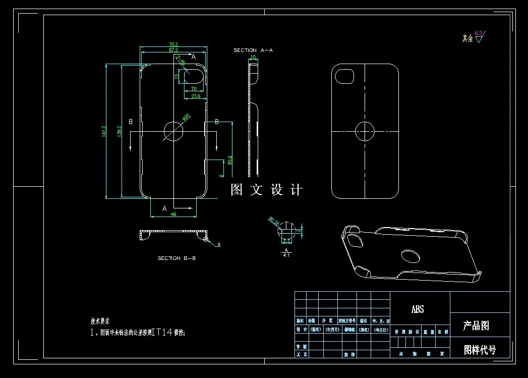 本次设计的产品为手机保护盖,具有重量轻,强度高,耐腐蚀,易清洁等 特点,为大批量生产产品。本次设计在针对产品进行工艺性分析后,确定模具分 型面、 型腔数目、 浇口形式、 位置大小; 其中最重要的是确定型芯和型腔的结构, 以及它们的定位和紧固方式。此外还进行了脱模机构的设计,合模导向机构的设 计,冷却系统的设计等。最后绘制完整的模具装配总图和主要的模具零件图及编 制成型零部件的制造加工工艺过程卡片。实践证明:该模具结构合理、可靠,并 能保证产品质量,对此类注塑产品的模具设计有参考价值。
