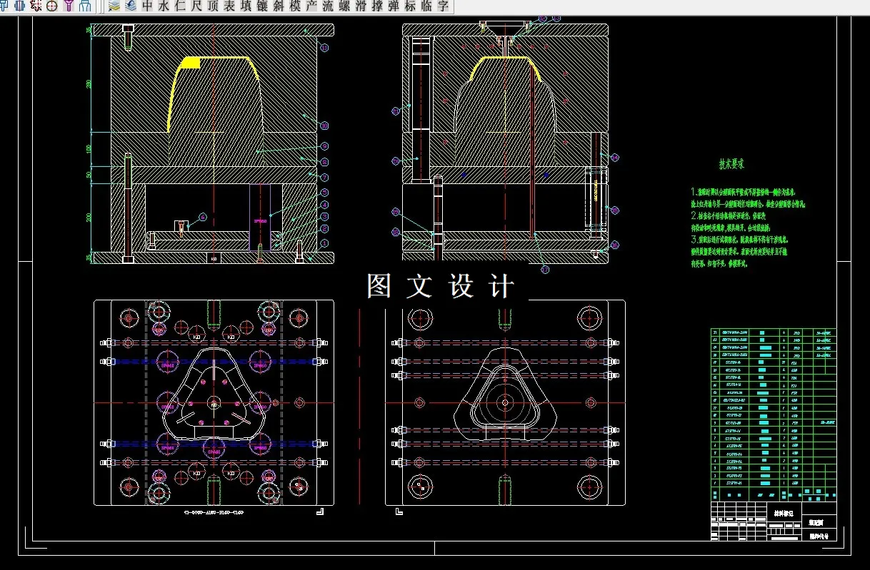 小凳子注塑模具设计-一模一腔/直接浇口方案 本次设计的为小凳子注塑模具设计,主要在对塑件进行成型分析的基础上从原材料分析、成型特性、分型面的选择、浇注系统的设计、冷却系统的设计、型芯和型腔的结构设计、推出复位结构设计、侧向抽芯机构的设计和导向机构的设计等多方面详细阐述了小凳子注塑模具的设计过程。同时通过合理地选择注射机并对注塑压力、最大注塑量、锁模力、开模行程等相关方面进行校核,进一步保证设计的合理型,并设计温度调节系统和阐述模具装配等方面。本课题最大的特点是模具由左右侧滑块组成,设计的模具结构合理,加工方便,工艺性好,能较好地运用于实际。