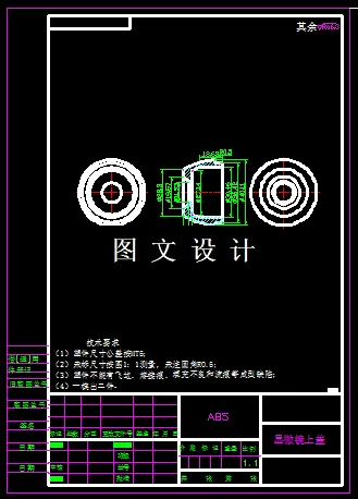 此零件为上盖零件,零件的外形是圆形结构,只是零件的外形尺寸比较小,结合生产需求,选择一模两腔结构,零件的端面是规则形状,因此将此处设计成分型面,侧面设计浇口,合理分布后,计算凹模壁厚,型腔尺寸,以及模具的外形尺寸,选择两板模标准模架,绘制模具结构图和零件图,选择合适的注塑机。