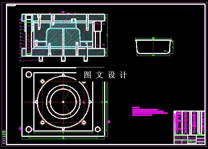 此蛋糕盒,是个圆形结构件,零件的形状简单,凸缘尺寸不大,但是工件的外形比较大,而且拉深高度也大,因此工艺分析之后,将落料和拉深工序分开,确定设计两套模具,然后详细计算出工件的展开图,并计算模具的刃口和外形尺寸,选择矩形钢板模架,绘制出模具结构图和零件图。
