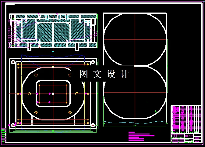 本次设计的零件,是家用常见的不锈钢洗碗池,零件属于矩形深拉深件,通过计算侧面和圆弧部分的展开尺寸,圆弧过渡绘制出展开图,再计算拉深系数,通过一次拉深实现模具结构,凸缘外形和工件底面的孔,可以结合成一套切边冲孔模,总体来说这个零件设计成两套模具,根据计算结果绘制模具图纸和零件图。
