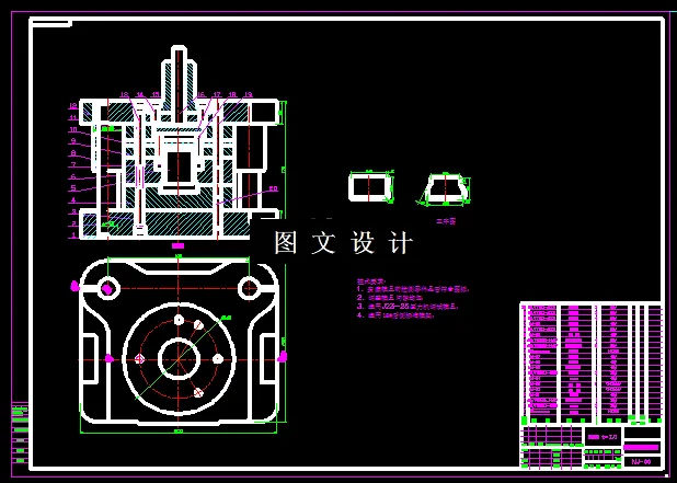 本次设计的圆筒件,不同意一般的直筒结构,口部直径小于拉深直径,因此工艺上要采用缩口结构,通过计算出零件在缩口之前的拉深高度,这时是直筒拉深件,然后再计算展开尺寸和拉深系数,确定一次可以成型,因此,工序设计成落料拉深模,缩口模,结合计算的结果,选择标准模架,绘制两套模具的结构图和零件图。