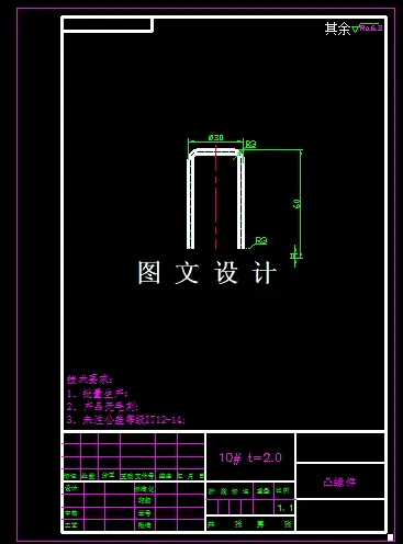 该零件加工需先落料,然后拉深,然后切边等3道工序,冲压工序中,落料和拉伸可以复合,切边采用单工序模具,具体拉深次数需要通过详细的拉深系数计算分析后才能知道,这样设计比较合理。本次设计只需要设计切边模。