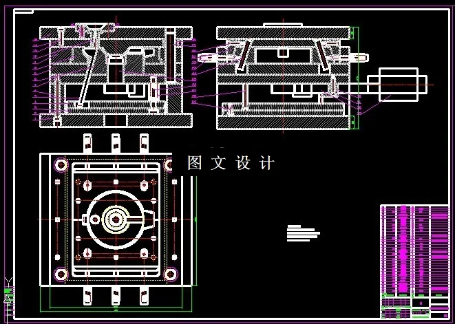 本设计中的产品形状简单,没有孔,但外面轮廓有台阶,如果直接脱模,或者强制脱模,对台阶部分影响很大,甚至导致改变形状,所以这部分需要采用抽芯机构,必须先将台阶部分先让出,才能脱模,所以本设计中需要采用哈夫抽芯原理来设计。具体见CAD图纸。