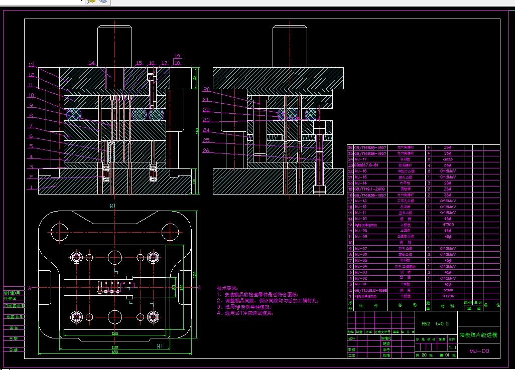 金属板料冲压是一种在工业生产中应用广泛的加工方法。随着现代各行各业突飞猛进的发展,金属件的结构复杂,精度高,需求量多,加上对生产的安全性、操作的方便性,加工的经济性等要求也日益提高,采用单工位模具已经无法满足生产的需要,许多制造商均采用多工位级进模进行生产。因此,多工位级进模在国内外模具制造业中应用日趋广泛。多工位级进模是在普通级进模的基础上发展起来的一种模具,是当代所有模具中冲压功能最多、结构最复杂、生产效率和自动化程度最高的一种冲模。在多工位级进模结构设计过程中,首先必须设计级进模的总装结构,然后再在此基础上进行模具其他零部件的设计。本模具采用切废料方式进行冲裁,故模具结构采用冲孔、导正、弯曲、落料的工序设计,排样采用单排横排排列。本论文分析了阳极焊片的冲压工艺性,介绍了阳极焊片多工位级进模总体结构设计,对工件进行了展开计算,确定了工件加工成型的工艺方案和排样方案,对模具进行了工艺计算,根据计算结果进行了凸模、凹模、垫板、导料板、卸料板、镶块等主要零部件的设计,还根据各标准对模具中用到的其他标准件,如模架、导柱导套等,进行了选择与设计。实践证明:该模具结构合理、可靠,并能保证产品质量,对此类零件的级进模设计有参考价值。