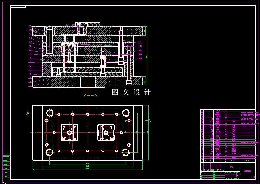 该产品为小批量生产,故设计的模具不要有较高的注塑效率,由于制品口部有一嵌件,模具采用一模四腔,在成型时必须由人工放置在模内,故不用设计成机械脱模。制品以对称双浇点方式进料,以达到同时充模的效果,还保持型芯平衡受力,流道板与型腔板一锥面台阶配合,确保型腔与型芯的定位。
