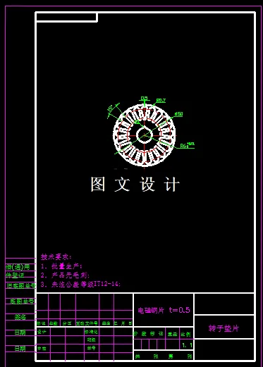 本次设计外形对称,整体成圆形,只是这21个缺口有点麻烦,每个缺口之间的距离只有0.5mm,必须要分开冲,错开冲,可以分两个工步完成,21个又是单数,分开后每个工步是10个,还多一个,综合考虑在冲工艺孔时可以先冲一个缺口,剩下的20个在后续的两个工步中完成,最后冲一圈落料,如CAD图所示。