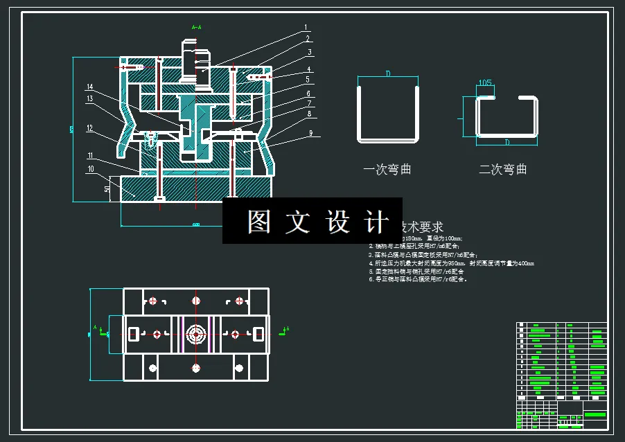 本次设计的是连接板,根据工件形状分析,基本工序有落料,冲孔,弯曲,根据工序结合方法,选择合理的工序复合,先冲异型孔,后弯曲,考虑弯曲过程对两侧材料时候有影响,材料时候会向外拉延,这个需要通过试模时才知道,所以展开计算只能是理论计算。本次设计工序是落料冲孔模,弯曲模,包括模具3D图,平面图,设计说明