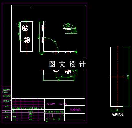 本设计是对给定的产品图进行冲压模具设计。冲压工艺的选择是经查阅相关资料和和对产品形状仔细分析的基础上进行的;冲压模具的选择是在综合考虑了经济性、零件的冲压工艺性以及复杂程度等诸多因素的基础上进行的;产品毛坯展开尺寸的计算是在方便建设又不影响模具成型的前提下简化为所熟悉的模型进行的。文中还对冲压成型零件和其它相关零件的选择原则及选择方法进行了说明,另外还介绍了几种产品形状的毛坯展开尺寸计算的方法和简化模型,以及冲压模具设计所需要使用的几种参考书籍的查阅方法。