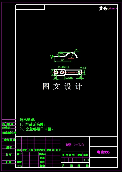 从产品外形尺寸分析,该产品尺寸很小,形状规则,都是直线过渡,为方便设计模具,落料时直角尖角处建议增加圆角过渡,这样设计模具时,凹模热处理后加工时不容易开裂,为便于模具的加工和减少冲压时在尖角处开裂的现象,同时也可以防止尖角部位刃口的过快磨损。