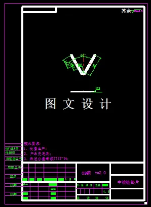 主支架落料冲孔复合模设计,包括装配图,零件图,设计计算。 此制件的形状比较复杂,且不对称,但没有圆角过渡,不方便模具的加工,同时在模具冲压时,凹模尖角处容易出现开裂的现象,凸模尖角处容易迸裂,为防止这样的情况出现,也为防止尖角部位刃口的过快磨损,产品尖角处应加上R角,产品材料厚度为2mm,R角应改为R1.0。