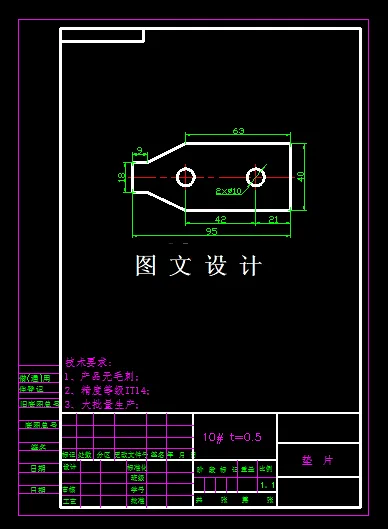垫片落料冲孔倒装复合模设计,包括装配图,所有非标零件图,3D立体图。 设计步骤 (1)零件成型方案确定; (2)零件零件形状分析,根据模拟结果进一步提出工艺改良方案; (3)使用CAD等软件对零件进行分析,设计模具装配图和零件图;