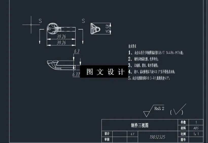 此设计为塑料盖注塑模具设计,提供二维装配图1张及主要零件图3张+设计报告文档( 文档约0.7W字 20页)。考虑到零件的使用情况和安全型。塑料需要有良好的阻燃性和耐热性,因此,采用ABS来生产,此材料是一种半结晶的热塑性塑料。具有较高的耐冲击性,机械性质强韧,抗多种有机溶剂和酸碱腐蚀。在工业界有广泛的应用,是平常常见的高分子材料之一。 1768478
