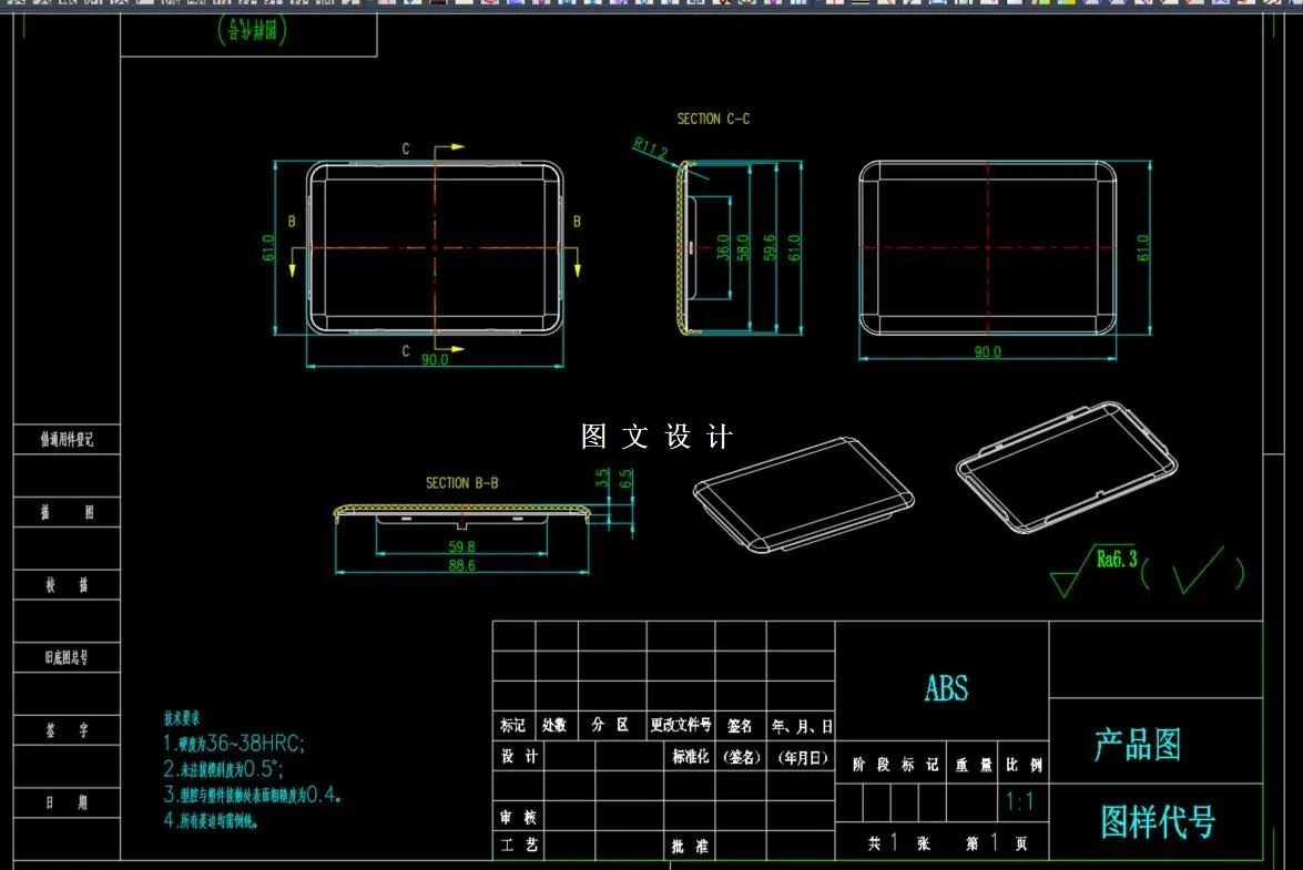本次设计的为充电宝外壳盖注塑模,为普通的塑料产品,运用模具相关知识,分析塑料产品工艺要求,尺寸精度要求,选取ABS材料,并且对本次模具的塑件分型面选取,型腔分布确定,计算产品的注射量数值,选用满足要求的注塑机,同时对注塑机的压力机锁模力等做出校核,且对成型零件设计,计算其工作尺寸等,并且通过制图软件绘制模具装配图零件图等,最终完成任务要求。