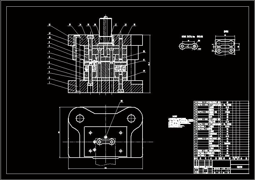 过对制件的材料,结构,尺寸精度分析。本制件选用材料10钢。连接板总体上下左右对称,厚度为2.0mm, 连接板左右各有一个孔。连接板上的圆直径为Φ10mm。所以连接板可以采用较简单的复合冲裁模。复合冲裁模采用落料冲孔同时加工,复合冲裁模加工的精度较高且连接板要求无翘曲无扭曲。所以选择倒装落料冲孔复合模。从凹模开始设计,选择模架,设计凸模,再算凸凹模等模具零件尺寸。