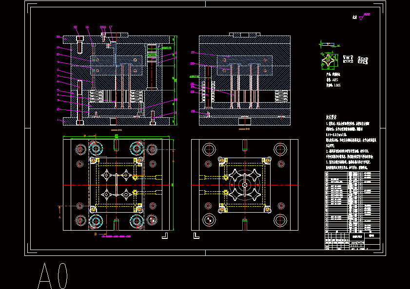 本套模具采用标准模架,其中绝大部分成型零件都采用标准件,这样模具都互换性很好,有利于模具的修整,装配。对于本零件,零件表面比较复杂,所以在模具的设计中,要充分考虑到各个成型零件的装配问题