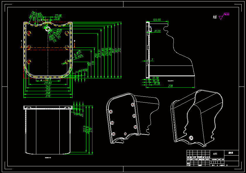 本次设计产品是小型婴儿座椅,结合实际需求采用了ABS材料,ABS材料的性能能够满足小型婴儿座椅的各种要求。塑件尺寸精度要求吧一般,表面要求光滑无明显痕迹。