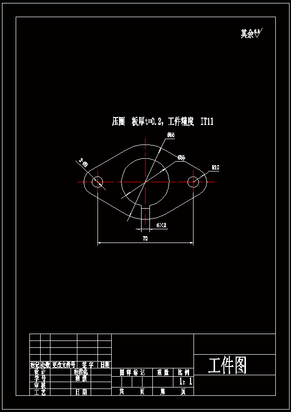 对压圈进行详细的分析,分析一般包含三个方面,分别是材料分析,结构分析和工序分析。该工件压圈材料为QSn4-4-2.5,属于常用的钣金类材料,冲压性能比较好,结构上总体来说结构基本属于对称,厚度是0.2mm。压圈主要有落料、冲孔成形的两道工序组成,可以采用级进模完成,由于多个工序同时完成,可以保证高的生成效率,同时还能提高工件的质量。