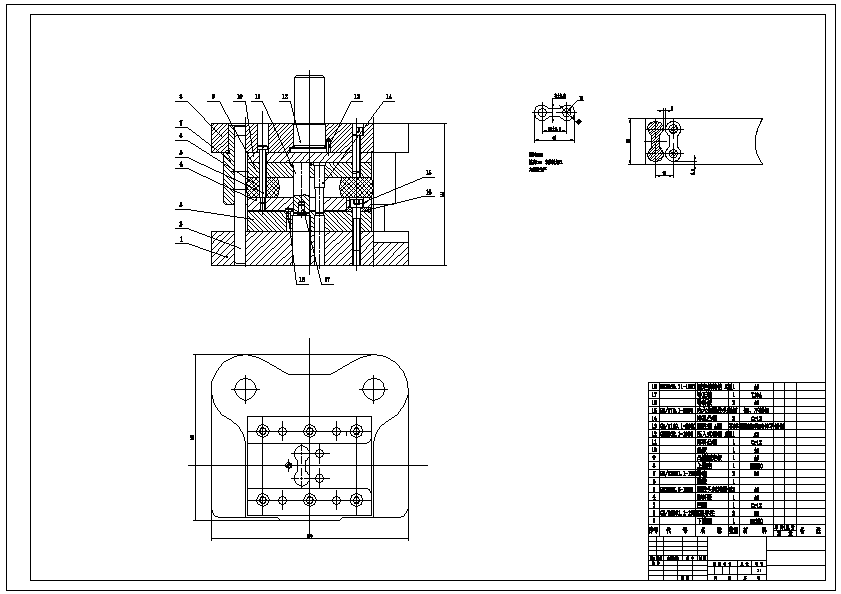 连接片冲压模具设计 在对链接片结构工艺性和材料加工工艺性正确分析的基础上,采用叙述与计算相结合的方式,分别对级进模的冲孔、落料等工序进行了从材料的选择到工作零件、定位零件、卸料零件、导向零件和安装固定零件等进行了设计。