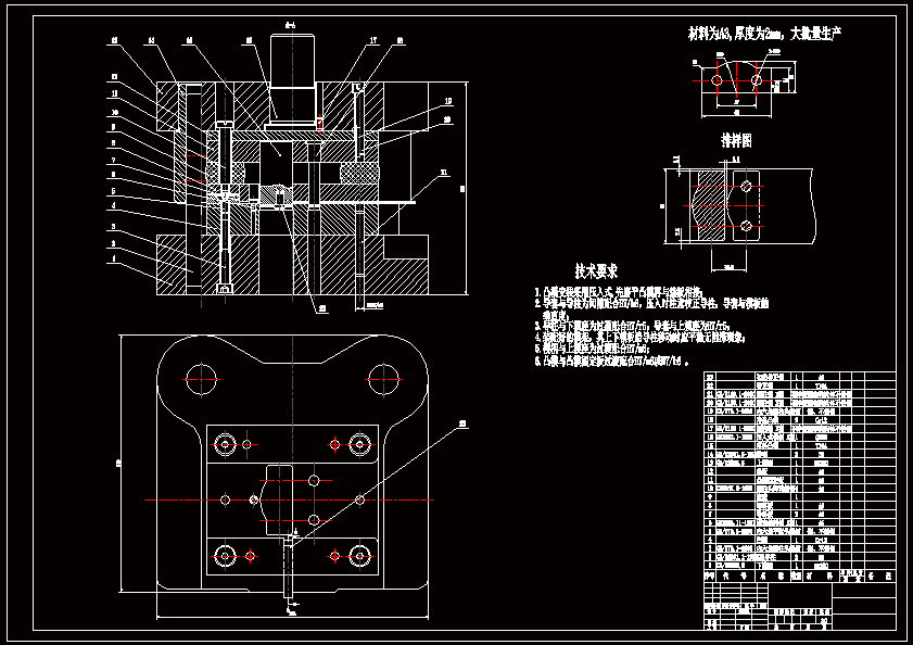 双缺口垫片冲压模具设计 零件结构形状相对简单,无尖角,对冲裁加工较为有利。零件中有1个圆孔,孔最小尺寸为4.5mm,孔离工件边缘的距离最小为9.25mm。根据该零件形状来分析,该零件的结构满足冲裁要求。