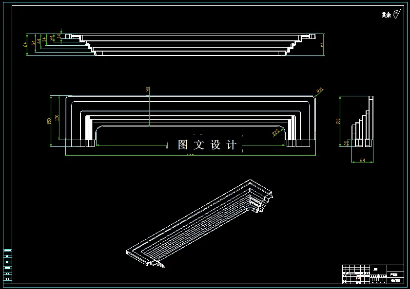 商用冷柜箱面框塑件注塑模具设计 模具结构是一个模具两个腔室,在模具的侧边的面上安置的进料口,在模具里面的注射剂使用的型号是HT530×A,这个模具是具备冷却功能的。加工的顺序合理的安排,将总装配图纸还有零件图都用电脑的绘图软件画出来。