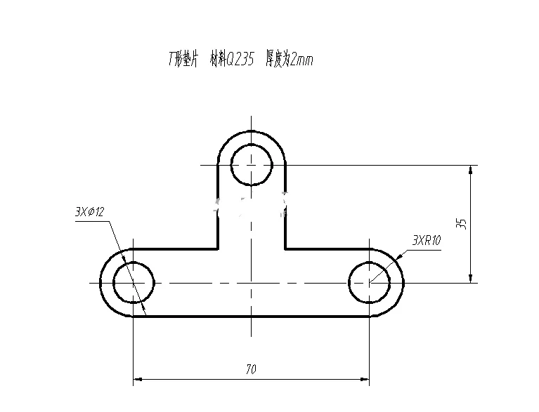 T型垫片冲压倒装复合模设计 T型垫片冲压倒装复合模设计 根据以上分析,可拟定出以下三种冲压工艺方案: 方案一:落料、冲孔单工序模 方案二:落料冲孔复合模单工序完成 方案三:采用多工位级进模 通过以上的分析,我们可以知道模具采用的是落料冲孔复合模,但是复合模又分为正装复合模和倒装复合模。所以我们有两种选择,一种是正装落料冲孔复合模,另一种是采用倒装落料冲孔复合模。通过工件的分析可知,有工件的壁厚足够,采用倒装复合模能够满足生产的需求,因为倒装复合模设计比较简单,所以最终我们选择用倒装复合模