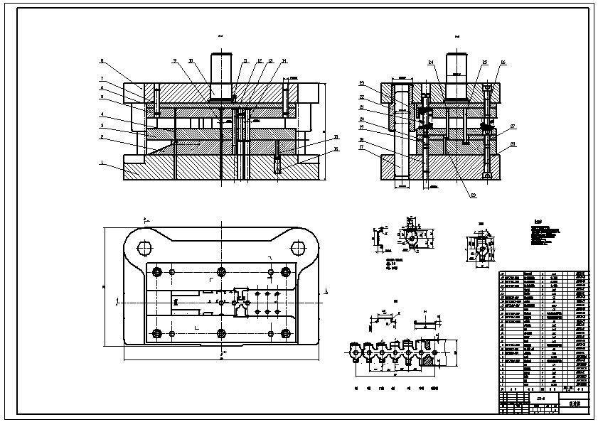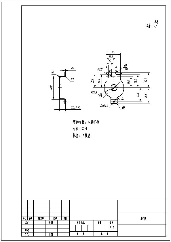 电机托架冲压级进模设计 我们选择出最好的方案,就是通过级进模进行生产,不但可以满足实际生产的需要,同时可以实现大批量生产。初步确定工件的生产工序为:侧刃定距冲孔、冲孔、弯曲、二次弯曲、切断。中间可以根据实际情况增加空工位。