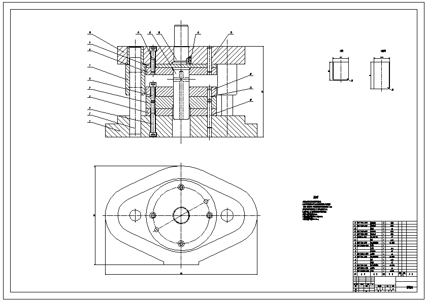 易拉罐圆形拉深件的冲压模具设计【三幅模具】 该零件结构较简单、形状对称,属于圆筒形拉深件。料厚最厚处为0.8,最薄处为0.2mm,中间需要进行变薄拉深;零件底部圆角半径r=4mm;尺寸公差都为IT12,满足拉深工艺对精度等级的要求,底部需要成形工艺。