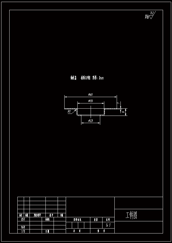 轴承盖零件落料拉深冲孔复合模设计 整体方案的制定 方案一:第一步采用落料模进行完成落料工序,然后用单工序拉深模,最后我们使用冲孔模进行底部孔的成型。 方案二:通过一个复合模来完成所有的工序,设计结构紧凑的落料拉伸复合模。 方案三:采用级进模 方案对比:方案 一采用模具较多,一个工件生产下来需要进过三个模具,不停的更换模具导致工件精度降低。方案三可以满足大批量生产的要求,但是由于采用级进模需要比较复杂的结构,而且没有凸缘的圆通件,必须使用自动送料装置,不够经济。方案二采用复合模,模具设计简单,能够采用最简单的设计,结构上也比较紧凑,能够满足我们生产的需要。 所以选择方案二,通过一个复合模来完成所有的工序,包含落料拉伸冲孔。