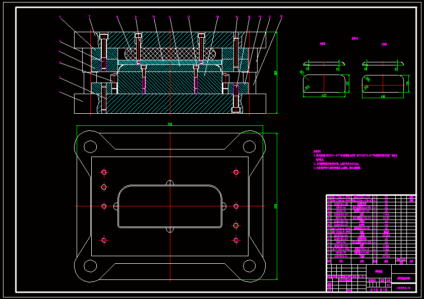 炉具前盖的冲压模具设计【热处理炉前门覆盖件】主要对炉具前盖进行了工艺分析和模具设计。首先要对零件进行工艺分析,再根据产品图纸进行必要的工艺计算,由工艺分析可知,此工件为一盒形拉深件,成形过程包括落料、拉深、切边、翻边四个工序。经过综合比较确定最优的工艺方案为:落料,拉深、切边、翻边依次采用单工序模成形。其中,拉深工序和翻边工序是成形过程中主要的成形工序。首先确定工件的拉深成形次数,判断盒形件是否能够一次拉深成形,经过分析讨论,本盒形件可以一次拉深成形,最终确定了毛坯的形状和尺寸。最后根据工艺方案选用模具种类,确定模具的具体结构形式,根据方案本人设计出了落料模具、拉深模具、切边模具、翻边模具四套模具,并用CAD完成了装配图和零件图。