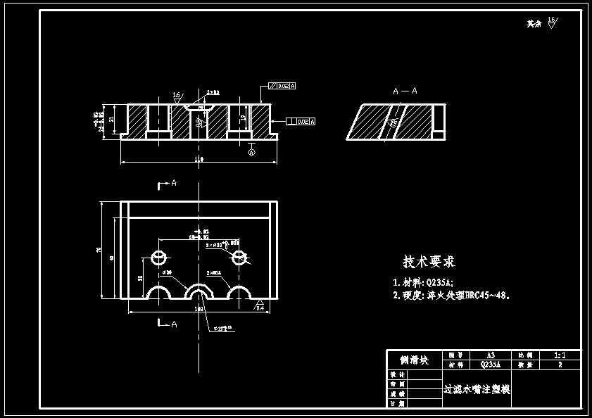过滤水嘴注塑模设计 该注射模最显著的特征是避免了传统的脱模方式。该模具结构设计简单可靠,加工装配方便。在查阅参考文献和对塑件进行工艺性分析的基础上,确定了模具设计的整体方案。并对塑料模具的设计参数进行了必要的计算,根据计算结果选用了注射机。