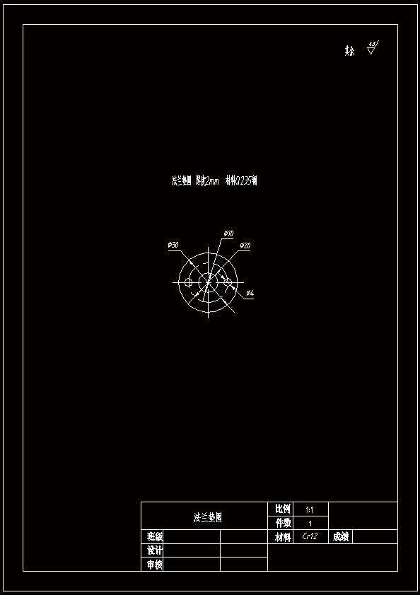 法兰垫圈冲孔落料倒装复合模设计 法兰垫圈采用大批量,材料为Q235钢,厚度为2mm,未注公差为IT14。零件如图所示。复合模的特点是生产效率高,冲裁件的内孔与外缘的相对位置精度高,板料的定位精度要求比级进模低,冲模的轮廓尺寸较小。由于零件的生产要求的是大批量生产、零件的尺寸较小,制造相对比较难,为提高生产率,根据上述方案分析、比较,宜采用复合模冲裁。