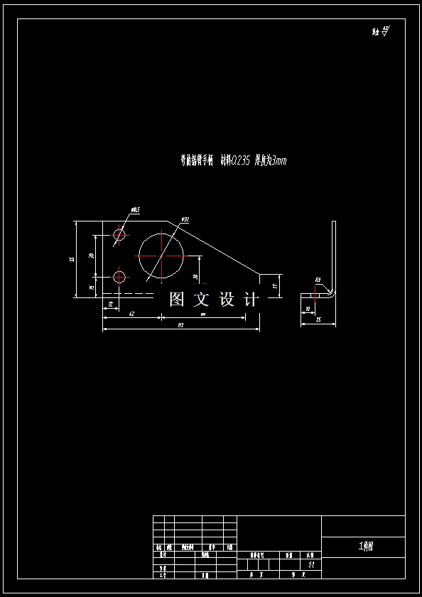 弯曲摇臂手柄冲孔落料倒装复合模设计 本次设计了一套冲孔﹑落料的模具。经过查阅资料,首先要对零件进行工艺分析,经过工艺分析和对比,采用冲孔落料工序,通过冲裁力、顶件力、卸料力等计算,确定模具的类型。