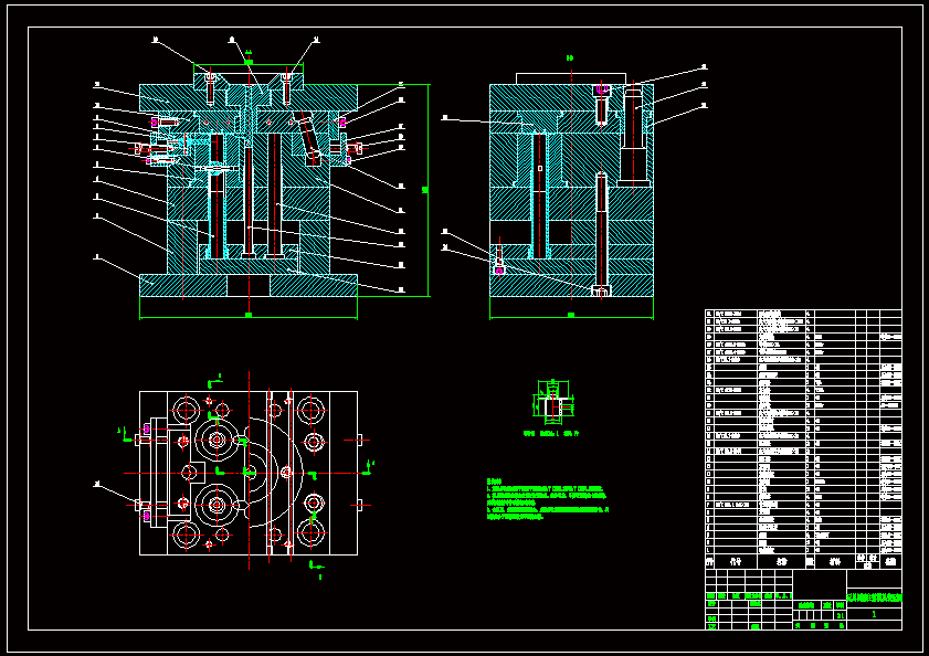 玩具圆桶注塑注射模具设计 根据塑件结构特点,模具采用单分型面注塑模,一模二腔,斜导柱与滑块侧抽芯,推管顶出塑件,能够满足实际中大批量生产,有很高的生产效率。